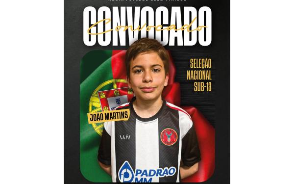 O jovem João Martins, jogador do Águia FC Vimioso e da Seleção Distrital Sub-13 de Futsal, foi convocado para o estágio da Seleção Nacional Sub-13, que se realiza entre os dias 17 e 19 de abril, na Cidade do Futebol.
