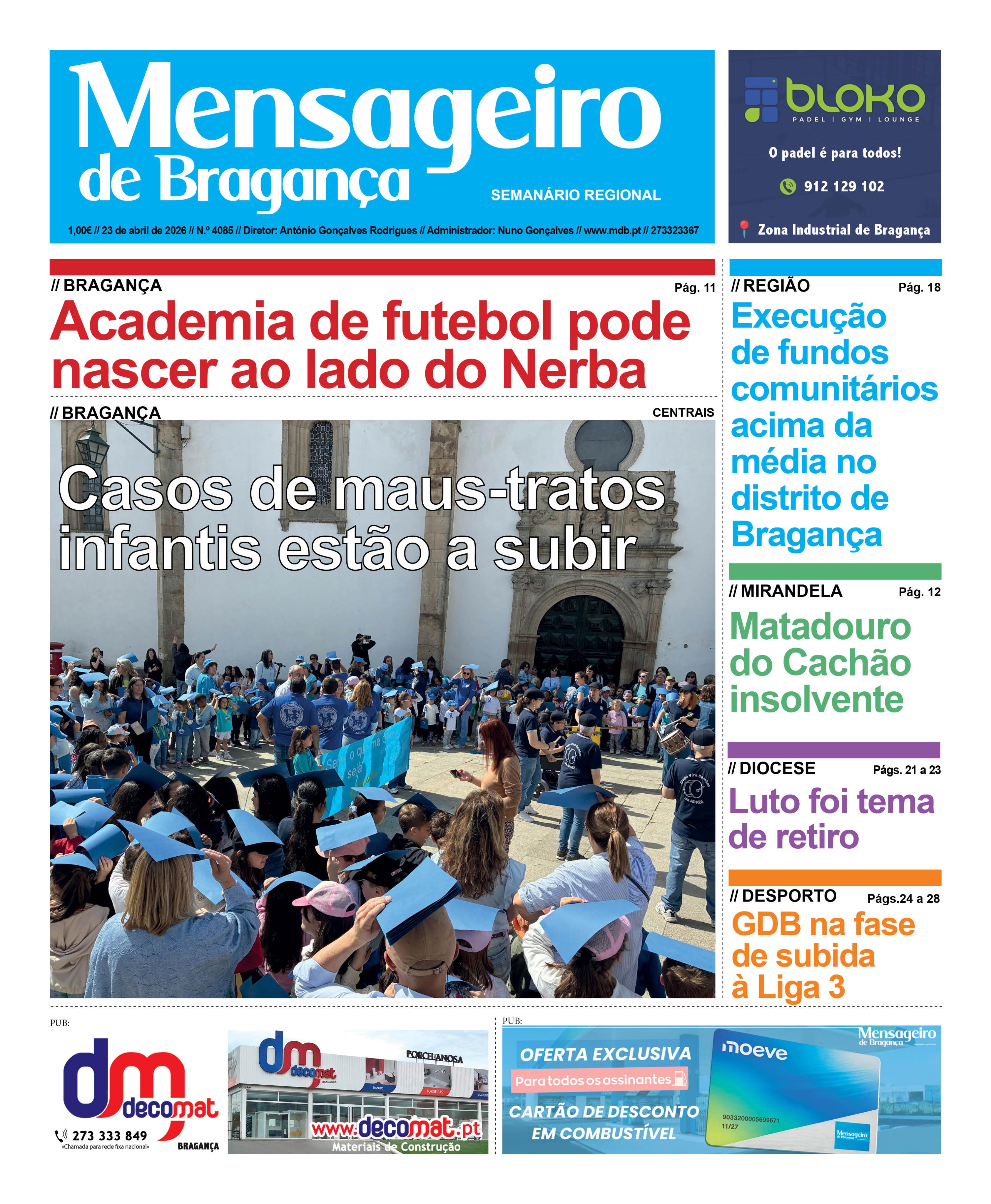 Data Edição Qui, 04/23/2026 - 12:00 Versão completa em PDF, disponível para assinantes. Informação acerca das assinaturas aqui Para fazer login aqui Notícias nesta edição: ISCTE identifica grandes assimetrias entre os municípios na atribuição do RSI Cem largadas previstas para combater a vespa do castanheiro este ano Feira de Emprego e Solidariedade será repensada Autarquia apoia associação culturais com “maior valor da última década” Comemorações do 25 de abril com várias iniciativas abertas à comunidade “Mirandelense” nomeado consultor do Presidente Deputado municipal da CDU entende que regulamento da Estação das Artes fecha a porta ao plano de mobilidade do Tua Município pede celeridade ao Governo aos apoios aos prejuízos provocados pelo mau tempo Areia arrastada das minas do Portelo causa problemas no parque de campismo Sobre Águas Feira Medieval ganhou estatuto nacional CPCJ alerta para aumento de casos de maus tratos a crianças no concelho à boleia da imigração Novo hotel em Pinela já tem hóspedes e espera vir a criar 50 empregos CPCJ alerta para aumento de casos de maus tratos a crianças no concelho à boleia da imigração D. Nuno Almeida em visita pastoral a Mirandela até ao mês de outubro Ano da Alimentação para valorizar produtos das regiões de montanha Semana da Oração pelos Seminários O mundo em puzzles construídos por Benjamim Pinto Dois alunos brigantinos premiados no concurso ‘Uma Aventura literária Município adquiriu uma nova máquina de rastos por cerca de 200 mil euros CTM Mirandela em desvantagem na corrida ao título de campeão nacional da liga feminina Opiniões nesta edição: Editorial - António Gonçalves RodriguesAbril Henrique FerreiraCinquenta anos da Constituição da «República de Abril», em Portugal Pe. Estevinho PiresAtualização de um projeto compartilhado Ana PereiraA inclusão que a escola promete e a realidade que os professores vivem Jorge NovoA escola inclusiva: entre a lei e a sala de aula