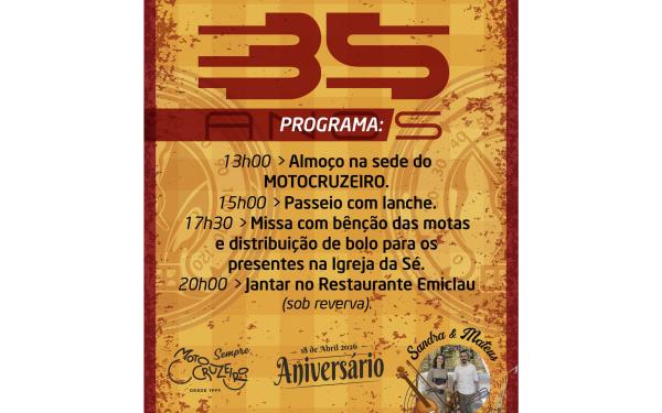 O Motoclube Motocruzeiro de Bragança assinala, no próximo dia 18 de abril, o seu 35.º aniversário, com um programa comemorativo que inclui momentos de convívio, caráter religioso e animação ao longo do dia.