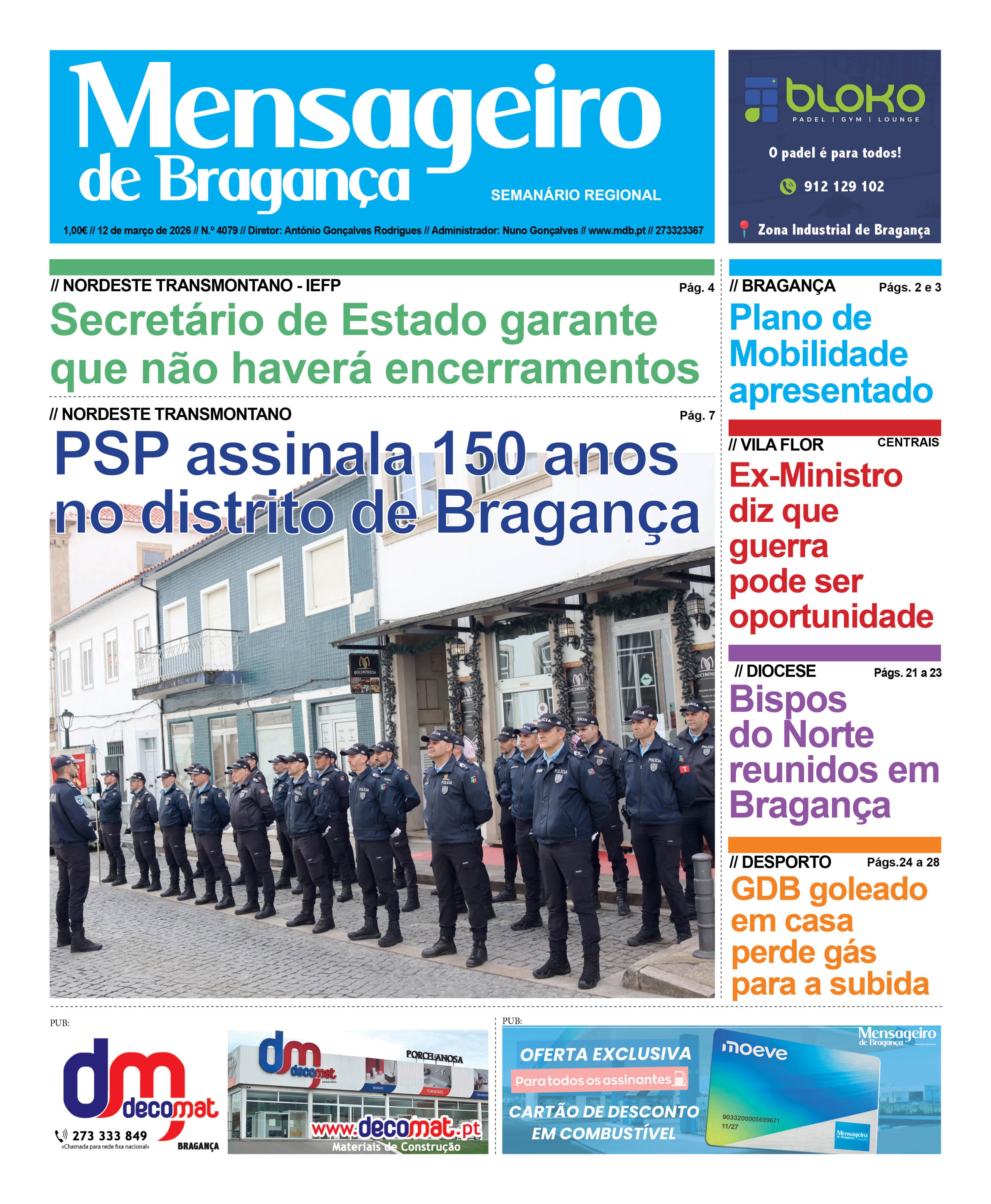 Data Edição Qui, 03/12/2026 - 12:00 Versão completa em PDF, disponível para assinantes. Informação acerca das assinaturas aqui Para fazer login aqui Notícias nesta edição: Câmara chamou população para dar sugestões para o Plano de Mobilidade Sustentável Linha do Douro reaberta após pressão dos autarcas Autorizada prorrogação do prazo da consulta pública da prospeção de minerais em Avidagos Municípios com garantia para “breve” da liquidação dos 335,2 milhões de euros de impostos das barragens Investigador do IPB acredita no sucesso da candidatura da alheira a património da UNESCO Técnico do Município defende criação de painel de provadores para a alheira Impacto positivo na biodiversidade e comunidades do Vale do Tua Antigo Ministro do Ambiente defende que a guerra no Irão “pode ser oportunidade" Bispos refletiram sobre o futuro do Seminário Interdiocesano Bispos da Província Eclesiástica de Braga reuniram em Bragança Recuperação da Ecopista já começou depois da derrocada Jogos tradicionais juntam instituições do distrito em iniciativa inclusiva Carlos Vaz autorizado a permanecer à frente da ULS Nordeste apesar de ter atingido a idade da reforma Ambulância consumida pelas chamas na A4 “Sabor & Douro MTB Experience” quer dar a conhecer Mogadouro aos participantes Escola de Natação de Bragança com oito atletas medalhados no Regional de Mirandela Acerto de jornadas aquece disputa pelo segundo posto na Divisão de Honra Vinhaense soma seis títulos e três recordes no Regional de Natação Rui Teixeira da AD Vila Chã venceu a XXII edição Trilhos de Mogadouro Ginásio Clube de Bragança conquista pódios nos Trilhos de Mogadouro Opiniões nesta edição: Editorial - António Gonçalves RodriguesO leva e traz... o deve e o haver José Mário LeiteAs Cheias da Vilariça (E as barragens do Sabor) Pe. Estevinho Pires“Quando nos voltarmos a encontrar” Amândio Correia“Firmes e Vigilantes” – 150 Anos da PSP no distrito Pe. Manuel RibeiroÀs vezes é preciso perdermo-nos