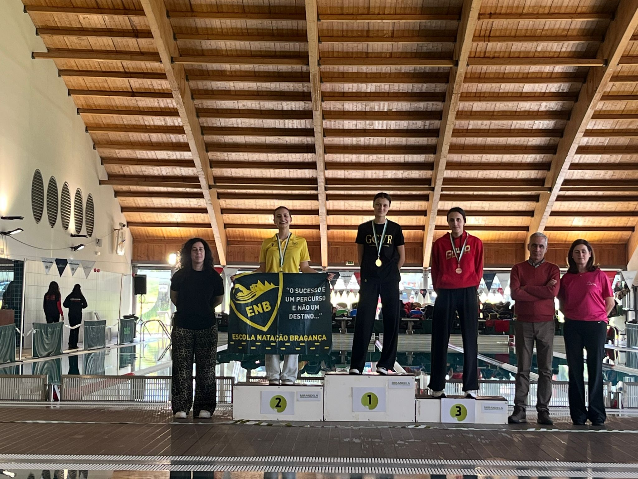 A Escola de Natação de Bragança esteve em bom plano no Campeonato Regional de Natação de Juvenis, Juniores e Seniores, realizado neste fim de semana nas Piscinas Municipais de Mirandela, ao garantir oito atletas medalhados e estabelecer vários novos recordes.