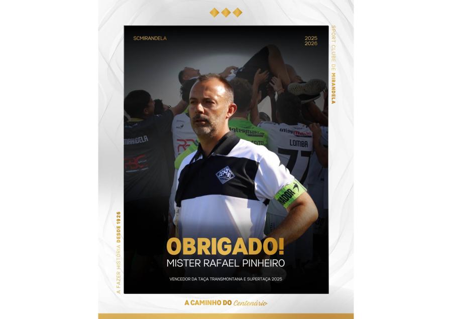Em comunicado, a direção mirandelense expressa “profundo agradecimento” a Rafael Pinheiro pelo trabalho desenvolvido, pela dedicação e profissionalismo demonstrados ao longo do seu percurso no clube, destacando ainda as conquistas alcançadas, nomeadamente a Taça Transmontana e a Supertaça 2025.