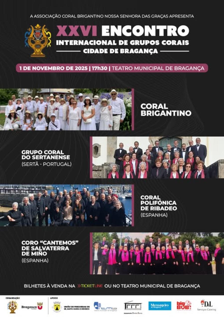 No próximo dia 1 de novembro, às 17h30, o Teatro Municipal de Bragança acolhe mais uma edição do Encontro Internacional de Grupos Corais Cidade de Bragança. Organizado pela Associação Coral Brigantino Nossa Senhora das Graças, o encontro celebra este ano a sua 26.ª edição, reunindo grupos corais de Portugal e de Espanha num espetáculo dedicado à música e ao convívio entre povos.