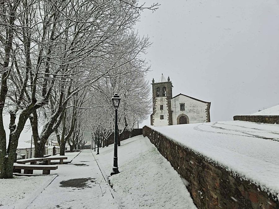 A neve começou a cair no Planalto Mirandês ao início da manhã desta quarta-feira.