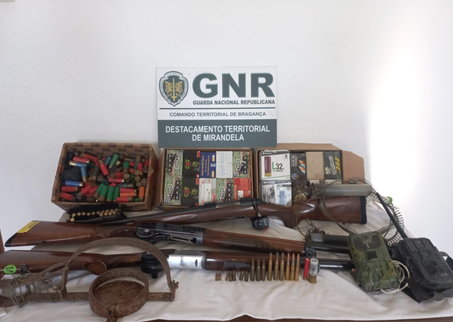 Na mesma altura a GNR apreendeu duas armas de fogo calibre 12, 40 munições de vários calibres, 832 cartuchos calibre 12, duas câmaras de vigilância (utilizadas no ato venatório), três cartões de memória e cinco armadilhas para captura de animais.