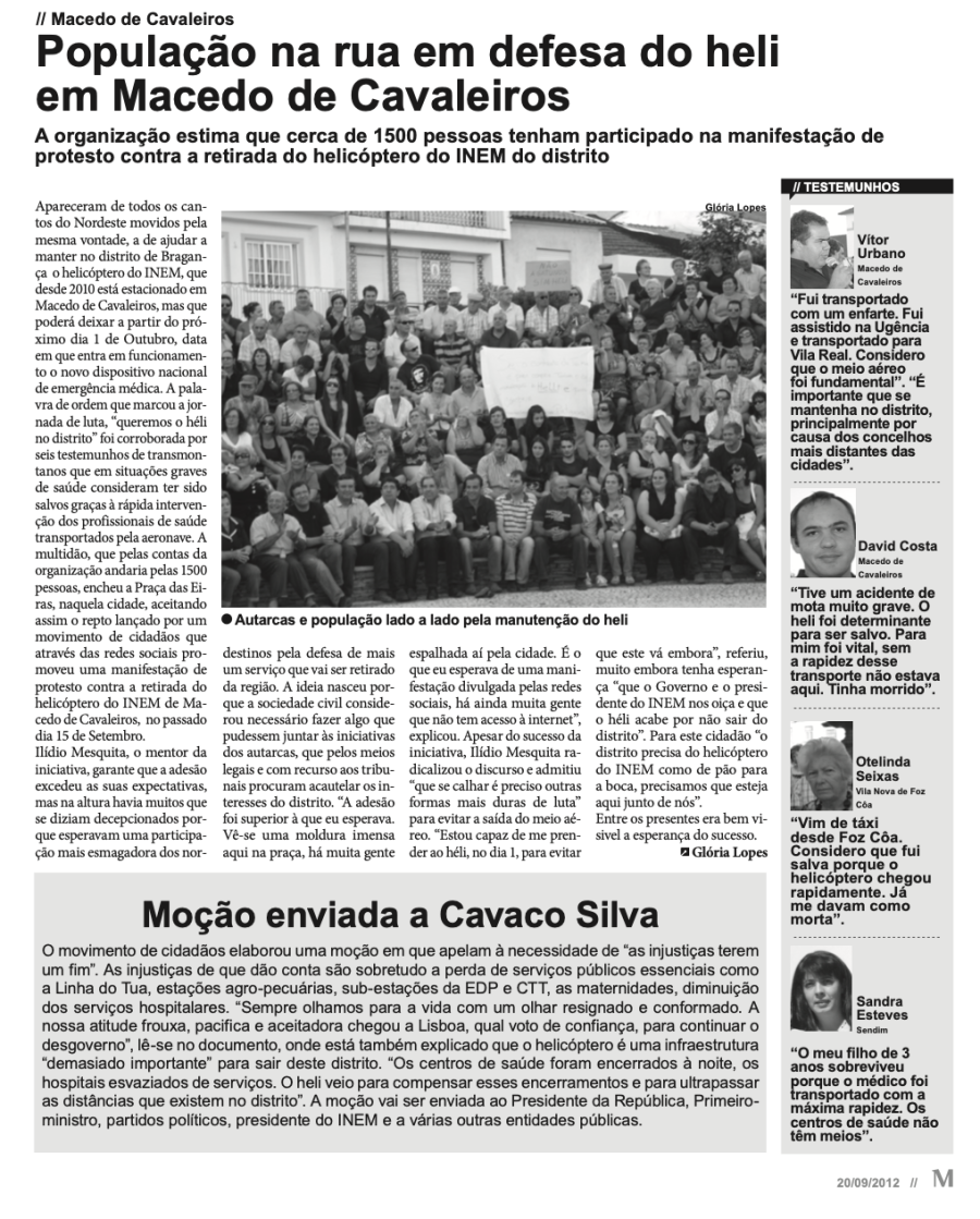 Entre as medidas elencadas, está a deslocalização dos helicópteros do Instituto Nacional de Emergência Médica das bases do interior do país para o litoral. No caso do heli sediado em Macedo de Cavaleiros, seria transferido para o hospital de S. João, no Porto, a partir de 2030, tal como já tentaram Governos anteriores.