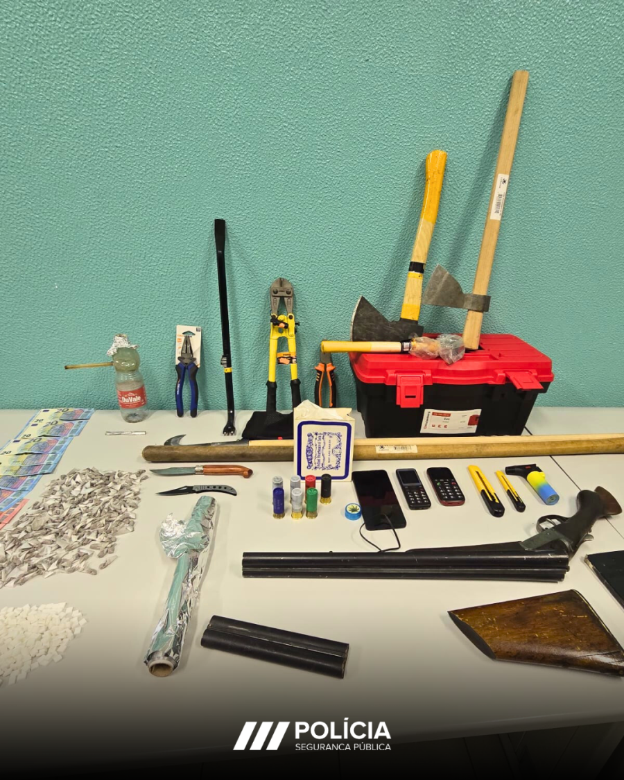Os agentes apreenderam ainda, ao detido, substâncias suspeitas de serem produto estupefaciente, que, após quantificação, correspondiam a 527,8 doses individuais de heroína e 340,75 doses individuais de cocaína. Foram igualmente apreendidos diversos objetos, designadamente um cabo de madeira, uma foice, uma caixa com ferramentas, um pé-de-cabra, entre outros, por não ter sido apresentada prova da sua legítima aquisição, circunstância que suscitou fundada suspeita quanto à eventual proveniência ilícita, motivo pelo qual foram recolhidos para averiguação.