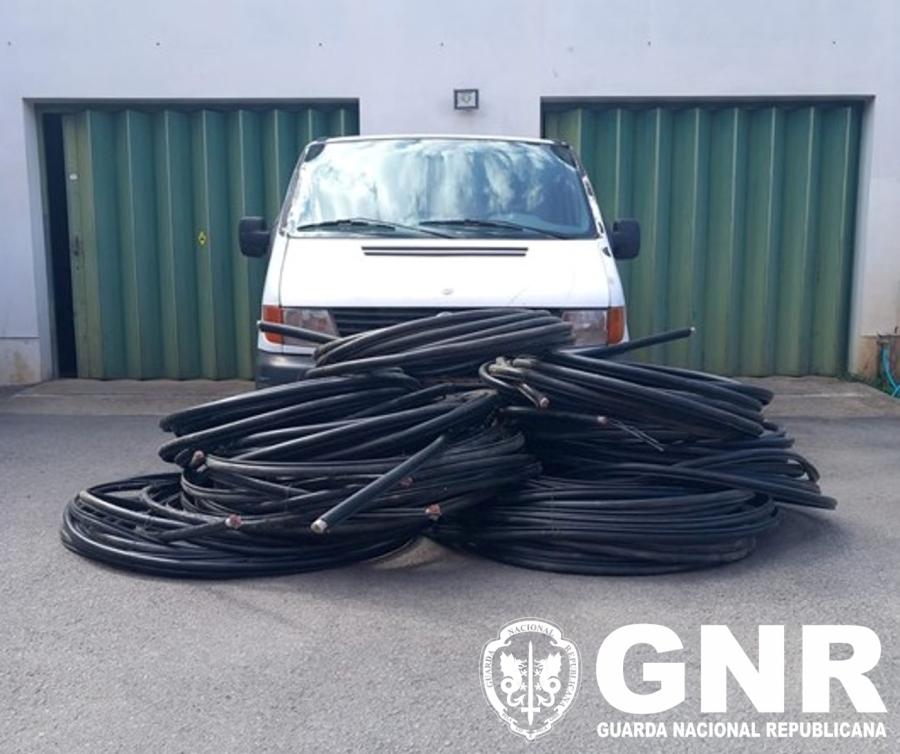 Desta ação resultou a apreensão de diverso material, nomeadamente uma viatura, um par de luvas, duas folhas de serra e 720 metros de cabos de cobre.