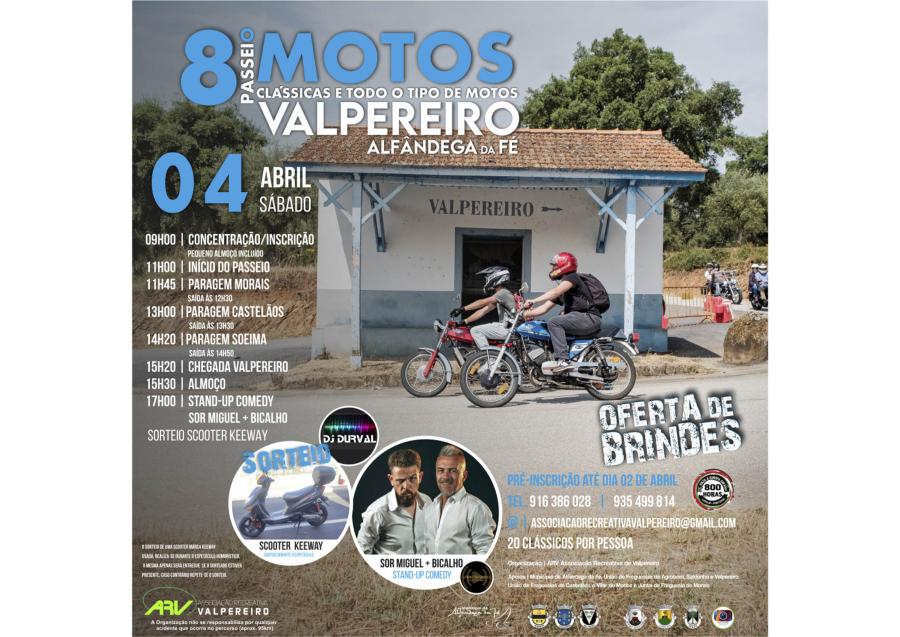 A aldeia de Valpereiro, no concelho de Alfândega da Fé, recebe no próximo dia 4 de abril a 8.ª edição do Passeio de Motos, iniciativa promovida pela Associação Recreativa de Valpereiro.